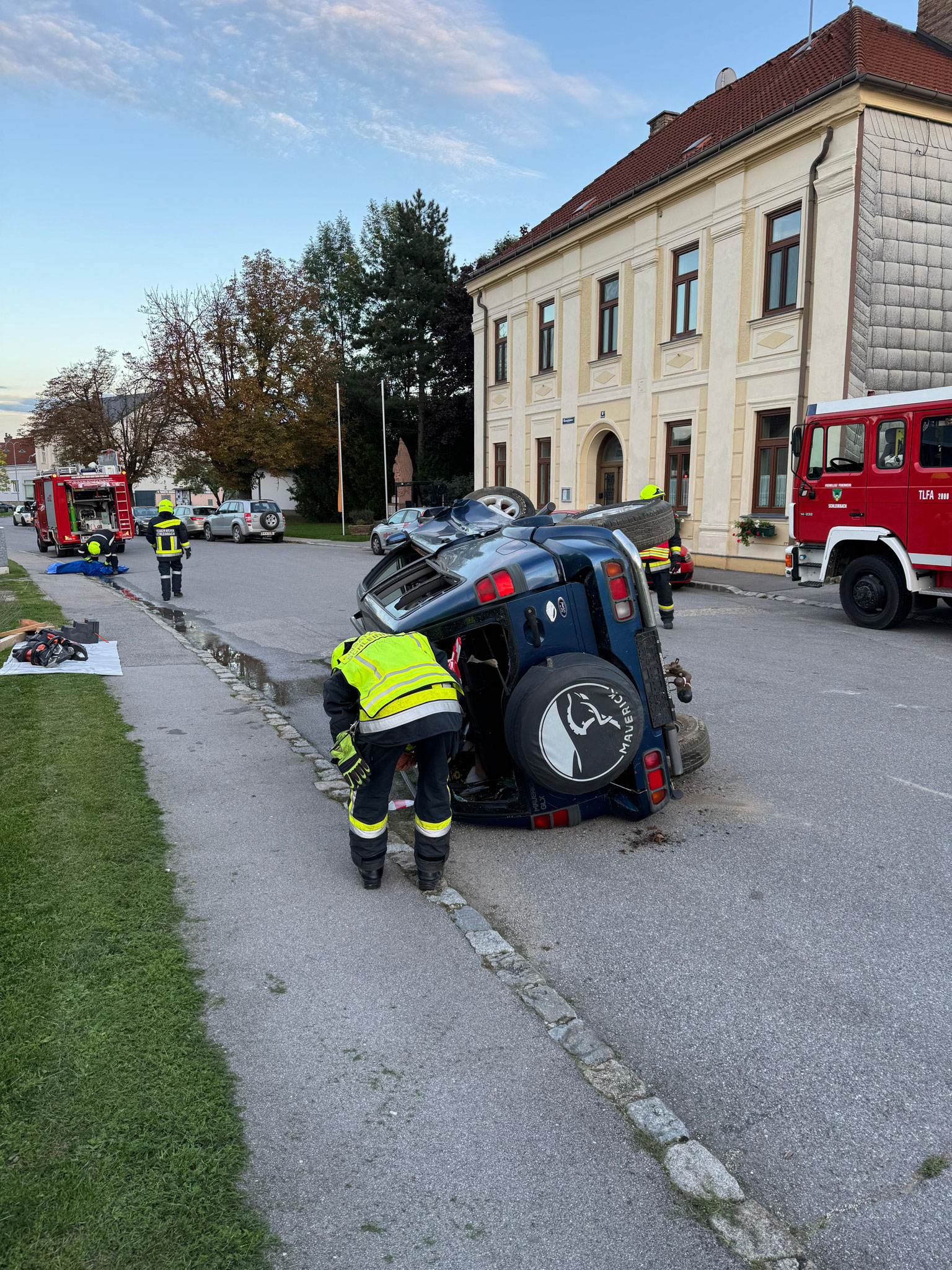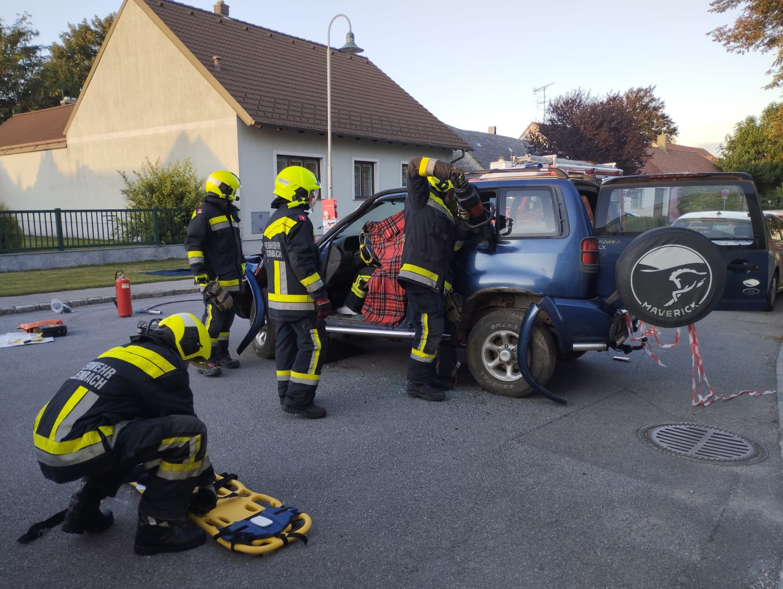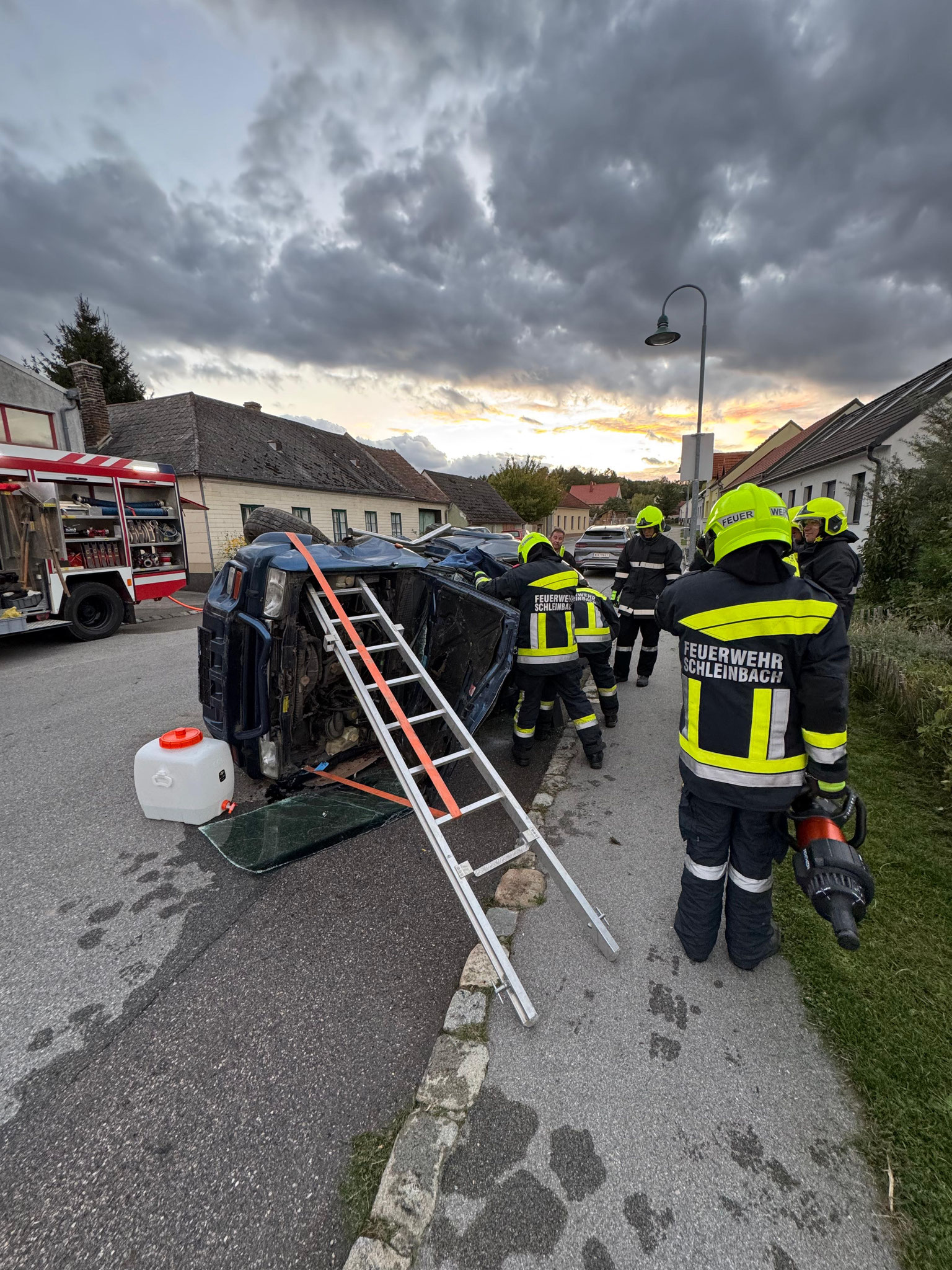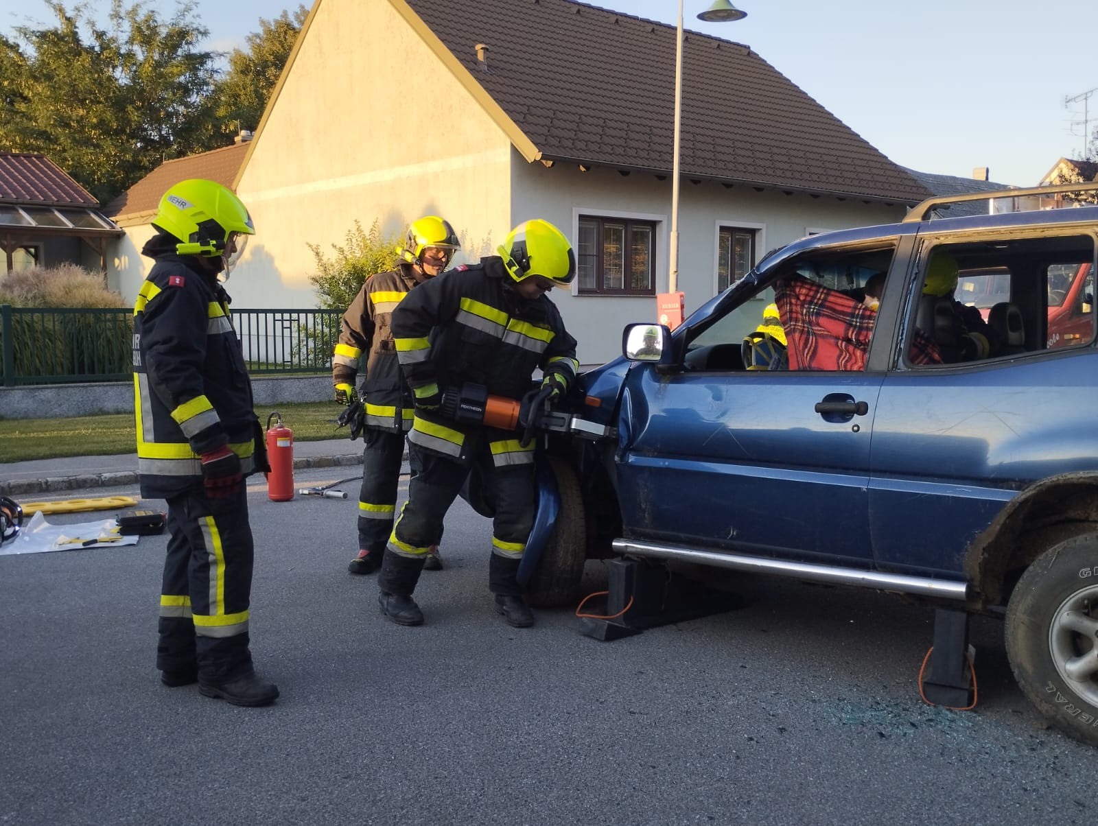 Am Samstag den 25.05. wurde die FF-SCHLEINBACH um 23:31 zu einem Verkehrsunfall mit einer eingeklemmten Person alarmiert. Rettung und Polizei waren bereits anwesend. Auch die Kameraden*innen der FF Unterolberndorf unterstützen uns. Ein Fahrzeug kam aus ungeklärter Ursache von der Straße ab und kam im Bachbett des Schleinbachs zum Liegen. Der Fahrer konnte sich aus eigener Kraft aus dem Fahrzeug befreien. Durch den Einsatz von Hebekissen konnte die Beifahrerin aus dem PKW befreit werden. Da nicht sicher war ob die Beifahrerin innere Verletzungen hatte, wurde sie schonend mittels Spineboard und Korbschleiftrage gerettet und zur weiteren Behandlung durch den Notarzt ins Krankenhaus befördert. Auch der Fahrer wurde zur weiteren Behandlung ins Krankenhaus überstellt. Die Kameraden*innen der FF-Wolkersdorf halfen uns mit ihrem LAST mit Kran das Auto gesichert abzustellen. Da bei dem Unfall eine 20.000 Volt Hochspannungsleitung beschädigt wurde, verständigten wir den Notdienst der EVN, welcher die Leitung vom Netz nahm, damit keine Gefahr besteht.