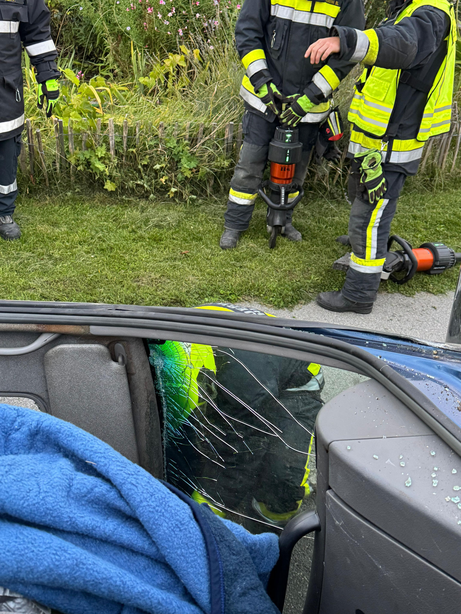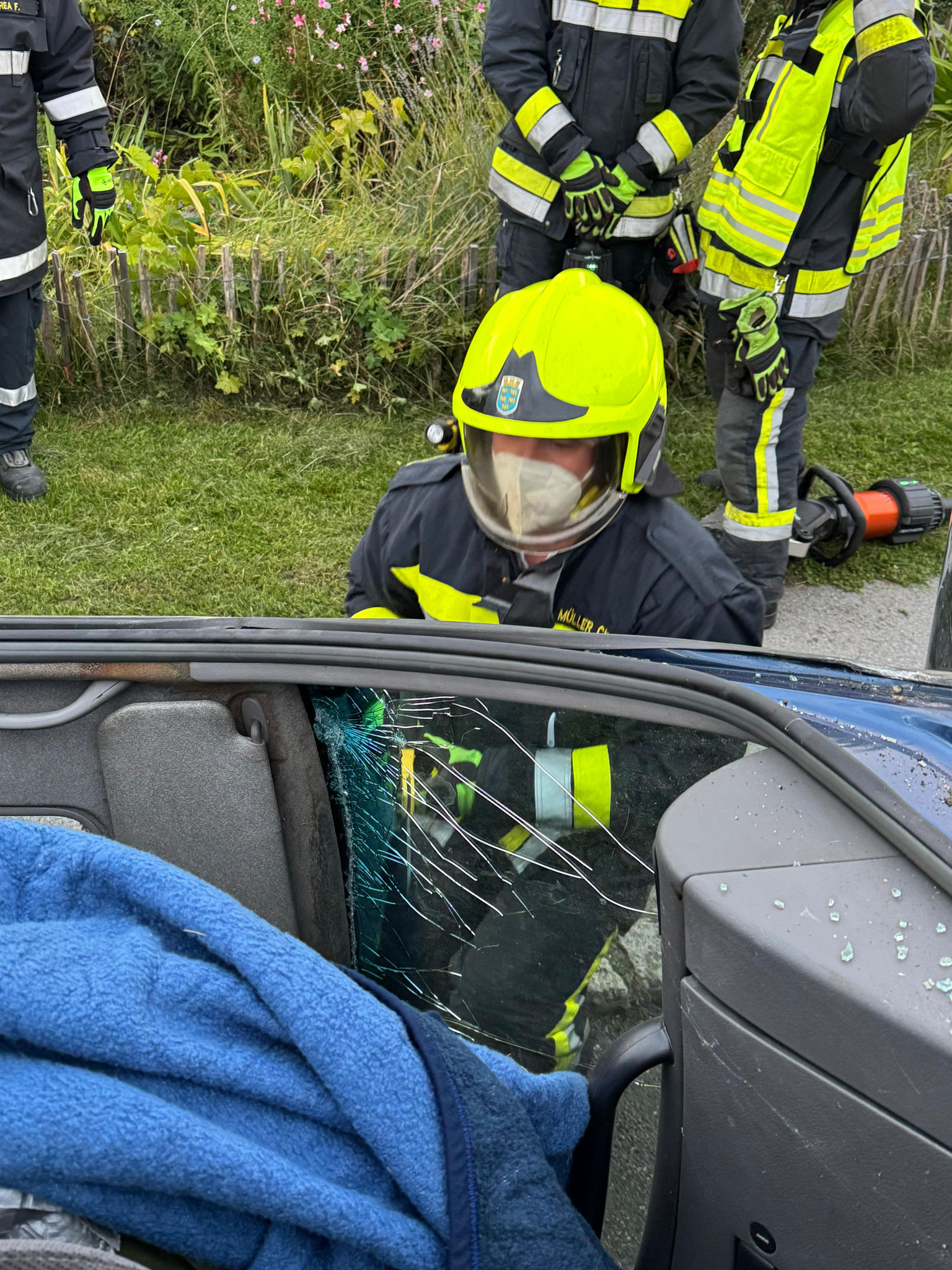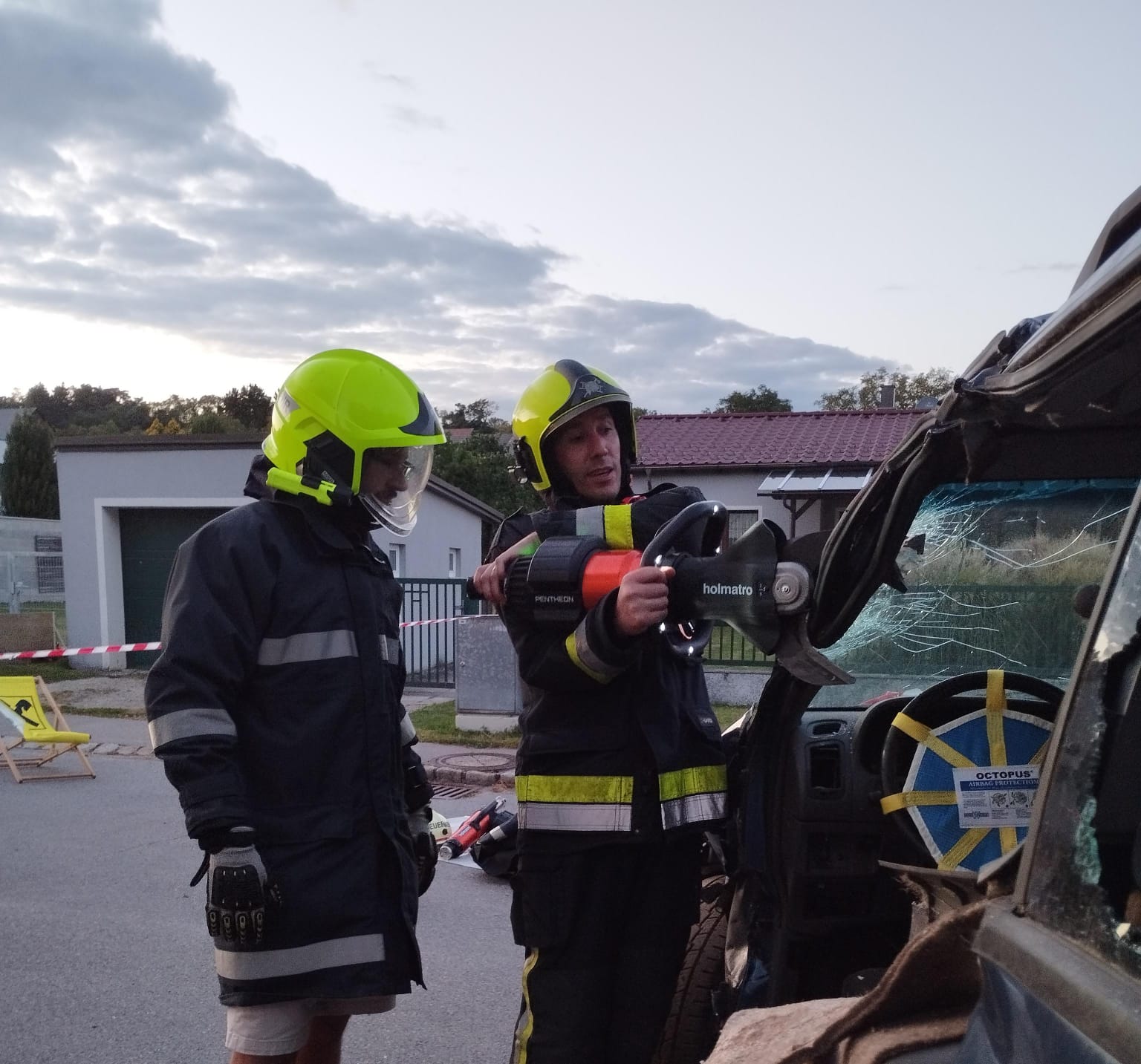 Übungsszenario war die Bergung einer Person aus einem verunfallten Fahrzeug (umgekippt) unter Zuhilfenahme unseres neuen akkubetrieben Rettungssatzes.