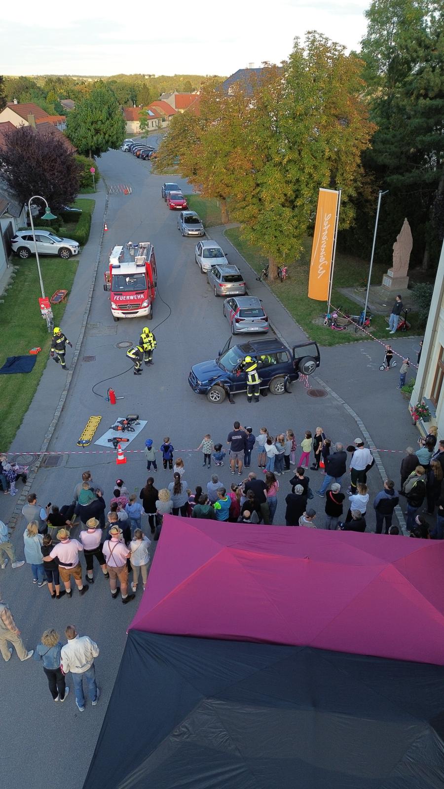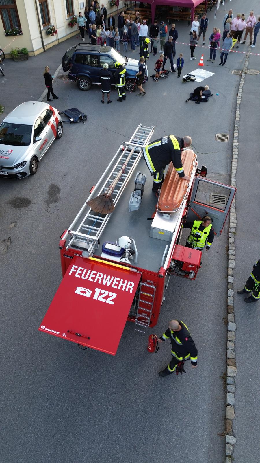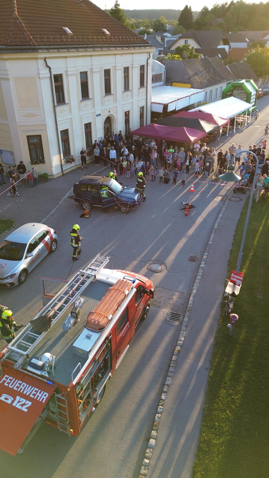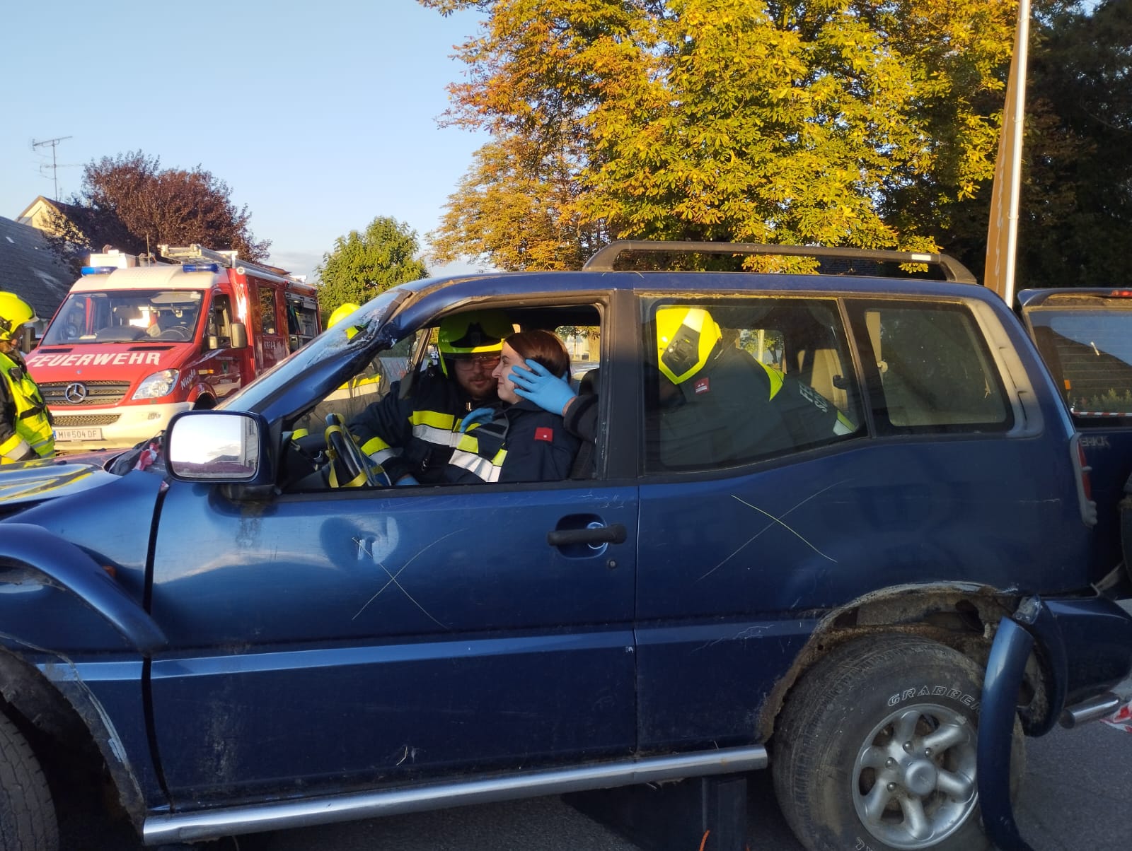 Nach dem Frühstück um 09:00 Uhr ging der erste Alarm los: Verkehrsunfall mit einem Radfahrer und einem Auto in Hautzendorf. Ein Unfallopfer mussten aus einem Graben, mittels Spineboard geborgen und durch die Jugendlichen erstversorgt werden.